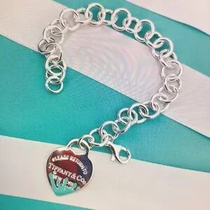 Chic Tiffany & Co. bracelet with a stunning silver heart charm. A timeless piece to enhance any ensemble.