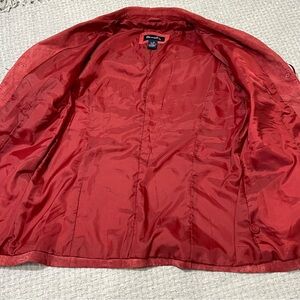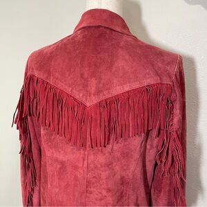 Gorgeous Red Fringe Suede Leather Jacket 3 Button Lined Coat Size Medium Western
