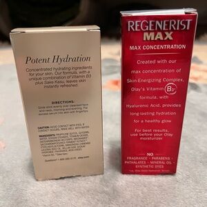 Discover OLAY's Hydration Serum and Pressed Serum Stick. Red and cream packaging. Perfect for refreshing and hydrating skin.