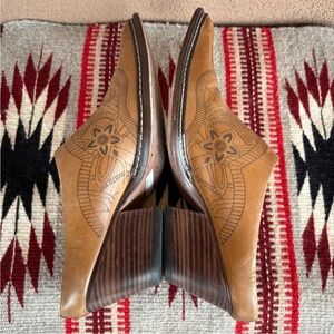Stetson: Camel Embossed Leather Western Mule: Size 10