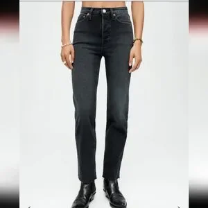 Re/Done Comfort Stretch High Rise 70s Stove Pipe Washed Noir Jeans Size 32