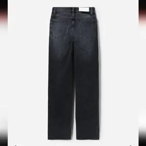 The 70s Comfort Stretch High Rise Stove Pipe in Washed Noir is our version of the classic 70s-inspired straight leg jean with cropped inseam. Features a worn black wash reminiscent of deadstock denim in minimal stretch denim, a classic button fly, and a raw hem.