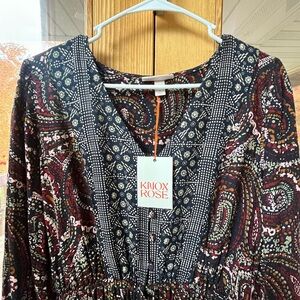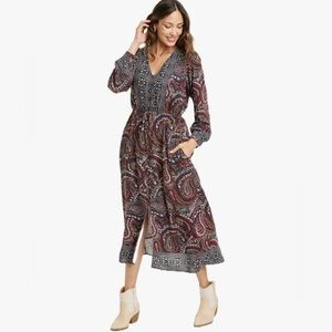 Chic long sleeve dress with intricate paisley design. Perfect for versatile styling.