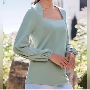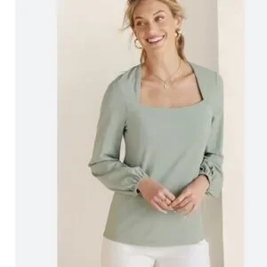 Soft Surroundings Maureen Square Neck Sprout Green Blouse