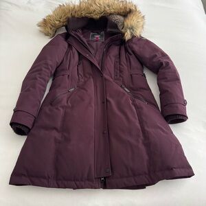 Vince Camuto Maroon Winter Jacket with Faux Fur Hood Size Medium