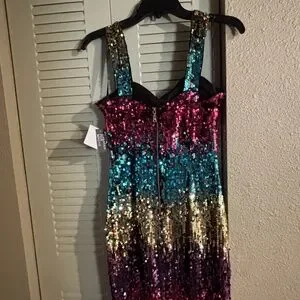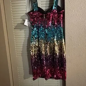 Guess Multicolored sequins Sweetheart neckline Sheath silhouette Size 6 NWT