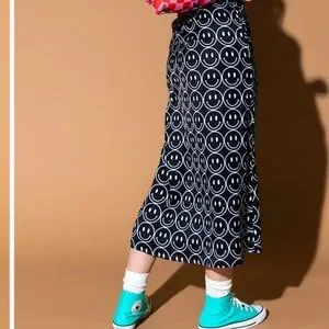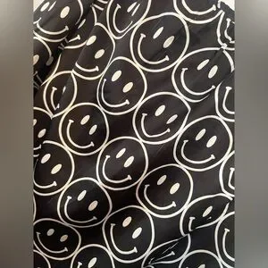 Chic and playful, this black and white skirt features a fun smiley face pattern. Perfect for adding a touch of whimsy to your wardrobe.has some runs as photoed. Never worn no clue how they occurred.