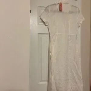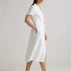 Quince White Linen Midi Dress with Belt Size XS Perfect for Summer