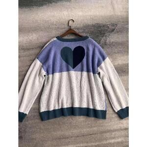 Features: Soft cotton-blend, wide scoop-neckline, drop-shoulder sleeves with elasticated cuffs, ribbed hems, colorblock design with oversized heart