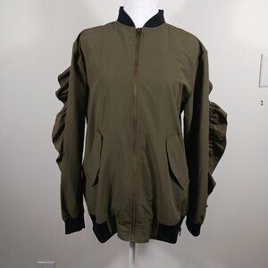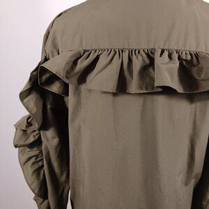 Gianni Bini Dark Khaki Jacket W/Ruffled Back & Sleeves, Size Medium, Utility
