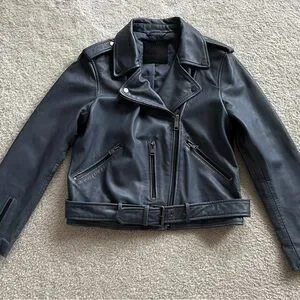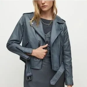 All Saints Balfern Slate Blue Leather Jacket size US 10