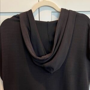 Elegant black hooded piece. Ideal for versatile wear on vacation or by the pool.