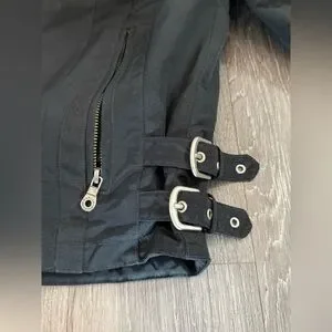 Inside pockets, side waist buckles for a perfect fit, and zipper sleeves at the wrist for gauntlet leather gloves.