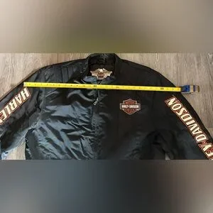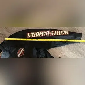 Harley-Davidson Black and Orange XL Embroidered Patch Men's Bomber Jacket