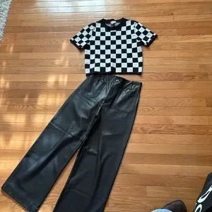 Anthropologie Black Wide Leg Faux Leather Pants
