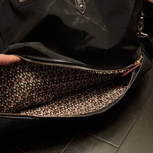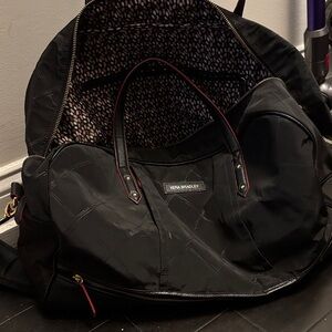 Elegant black duffel bag with spacious interior. Ideal for travel and daily use. Features sturdy handles and stylish design.