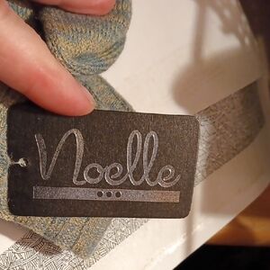 Chic knit long boot socks by Noelle. Features blue and gray tones. Ideal for warmth and style.