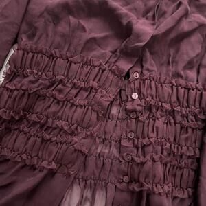 Moda international sheer silk Burgundy Y2K ruffle waist shirred blouse with long sleeves. So chic and flattering. Perfect for fall coquette goth glam styling. Size XS #gothic #fairycore