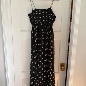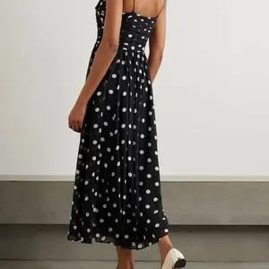New with tags Dôen polka dot dress. Inspired by chic ‘50s styles, DÔEN's ‘Maryanna’ dress is cut from wispy silk-georgette patterned with polka-dots. It has a square neckline decorated with a sweet bow and fits slim through the ruched bodice before falling to a floaty skirt. Style yours with tonal accessories and a red lip. Would be so perfect for holiday parties. Originally $500.