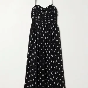 DÔEN Maryanna bow-detailed ruched polka-dot silk-georgette midi dress NWT