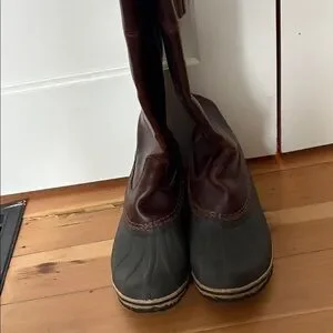 Sorel rain boots, rubber duck boot with tall leather upper. These are beautiful and functional! Size US women’s 9 or EU 40. In great used condition from smoke and pet-free home.