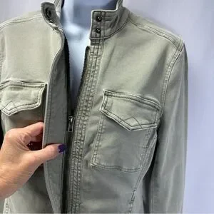 Liverpool Green Denim Jacket Mandarin Collar Size Small Olive