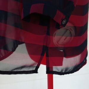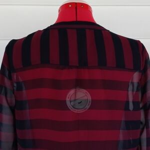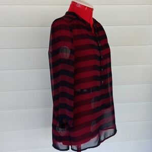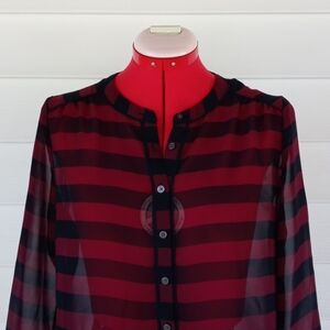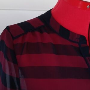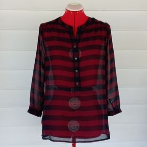 Black and maroon stand collar sheer Blouse with media buttons and 3/4 sleeves.