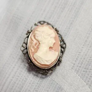 This is a beautiful vintage cameo brooch by Jezlaine.