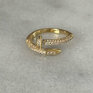 New Drop Gold Crystal Pave Nail Wrap Ring Brand New