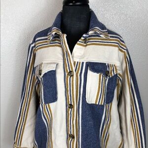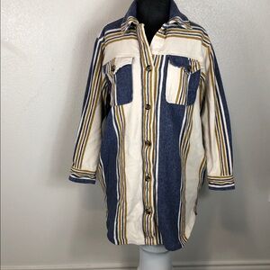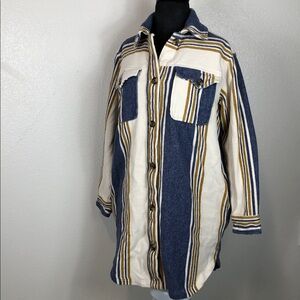 Aerie Striped Shacket Button Up Long Sleeve Flannel Yellow Blue Oversized XS