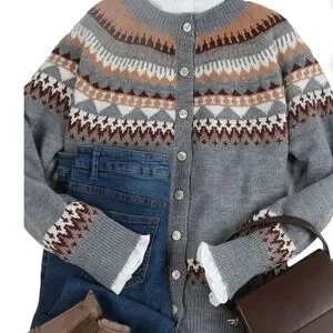 Stay cozy and stylish with this gray patterned women's sweater. Perfect for any casual outing. Sold out online.