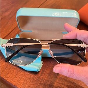 Tiffany & Co. Silver and Black Aviator Sunglasses