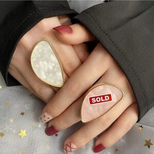 Adjustable Irregular Bohemian Style Pearl Tone Ring: