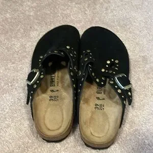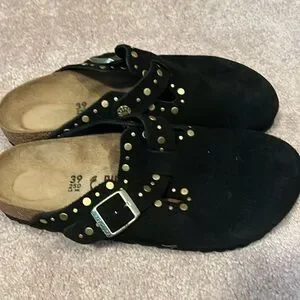 Birkenstock black suede clogs with gold grommets size 39 worn once