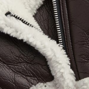 jacket, coat, biker, fleece, sherpa, faux leather, coffee, brown, cream, off-white, hip, fashionable, on trend, winter, fall, spring, women's, long sleeve, edgy, modern, stylish, rebel, moto, asymmetrical, statement jacket, versatile, zippered, work, play, school, fun, day to night, date, night, cool, modern, women's, long sleeve