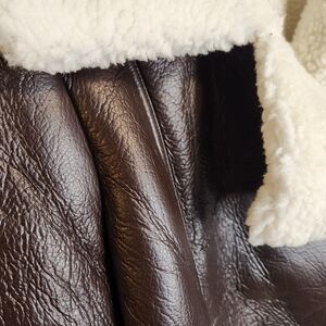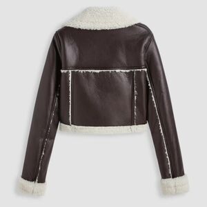 CIDER BROWN FAUX LEATHER & FLEECE CROPPED BIKER JACKET COAT MEDIUM NWT