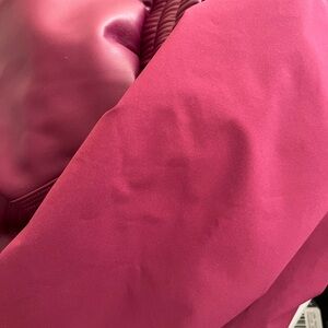 NWT! ALO yoga faux leather power hour cargo joggers. Color is wild berry. Elasticized waistband with cord on the inside. Fully lined. Heavier weight. Cargo pockets. Alo logo on left leg. Elasticized cuffs. Size small. 28.5 inch inseam.
