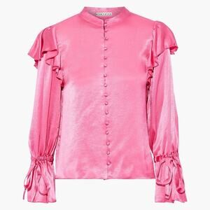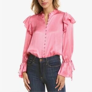 Alice + Olivia | Women’s Barbie Pink Brayden Ruffled Satin Blouse Tie Sleeves Top