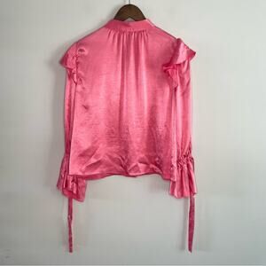 Alice + Olivia | Womens Barbie Pink Brayden Ruffled Satin Blouse Tie Sleeves Top