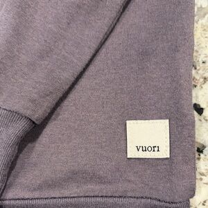 beautiful muted purple, easy to layer. Small pinhole in right cuff, last picture reflects.