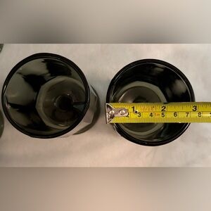 These are really cool. They are a true and obvious tribute to history of drink ware. The color is between olive green & smoky gray. They are in excellent condition. They are a fun, collectible way to serve any drink. I have 3 sets of 2 glasses each listed. They are on the heavy side, however I am willing to pay the shipping upgrade if you want all 6 glasses, just bundle and buy to save on shipping.