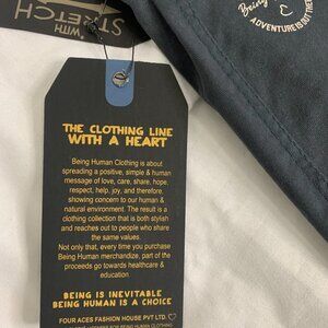 These pants are brand new and still have the original labels attached. The Being Human logo is sewn above the back right pocket, adding a touch of subtle designer detail.