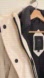 Elegant white puffer with a cozy hood. Features black accents for a sleek look.