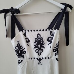 Feminine Black and White Damask Pattern Dress Bow Tie Straps Size Medium