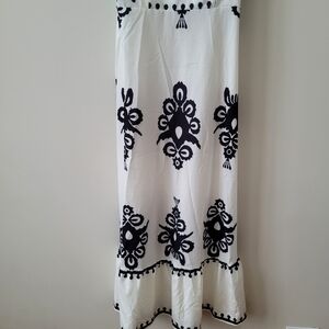 This elegant black and white dress features intricate embroidery, perfect for any occasion. The stylish design and classic colors make it a versatile addition to your wardrobe.