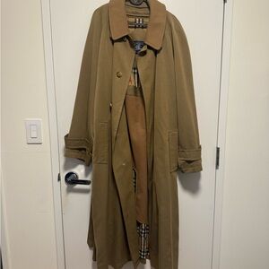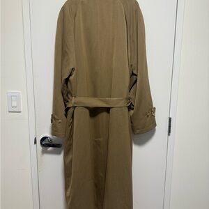 Elegant brown trench coat with a timeless design. Features a belted waist and buttoned cuffs.