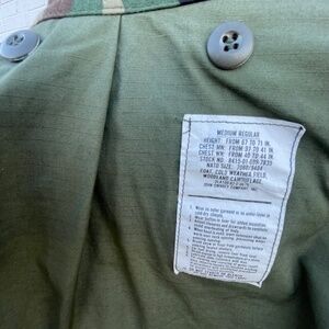 Classic Woodland Camo cold weather field jacket. Has rain hood in collar zip storage.