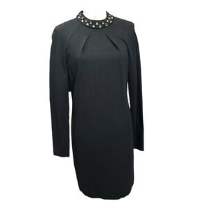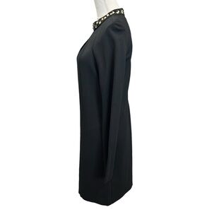 Trina Turk Black Studded Neck Long Sleeve Sheath Dress Size 8