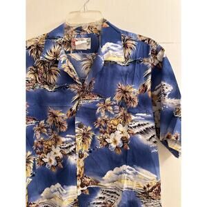 VTG Hilo Hattie Aloha Hawaiian Original Palm Tree Coconut Hibiscus Shirt Large