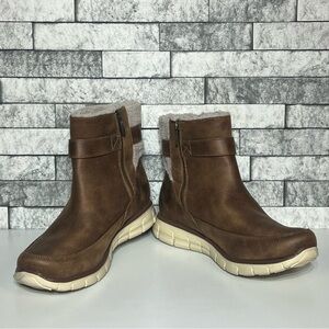 Skechers Slip Ins Womens 9.5 3M Scotchguard Vegan Leather Side Zip Boots